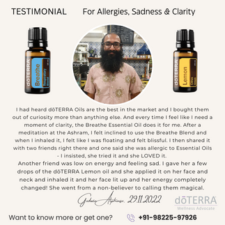 These are a few Testimonials from folks who have been using these oils. If you like what you read, and want to get some oils for yourself, reach out to me on 9822597926 or scan the QR code in the images below to create your own account and get the oils at a 25% discount!
